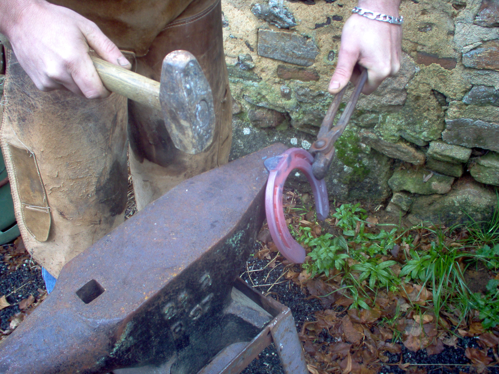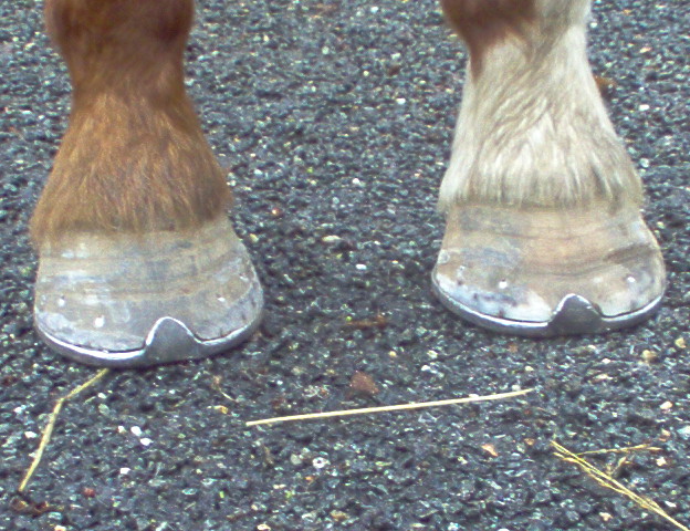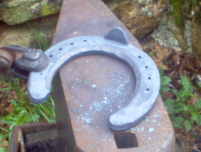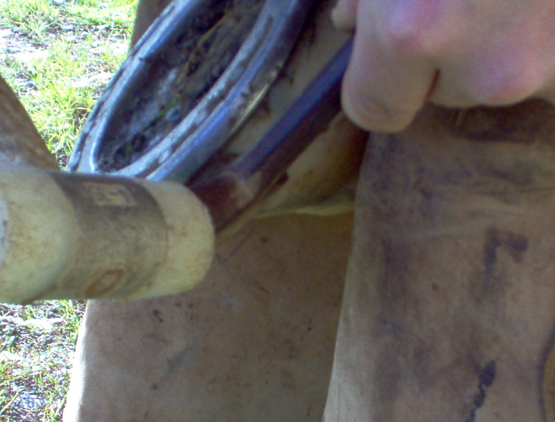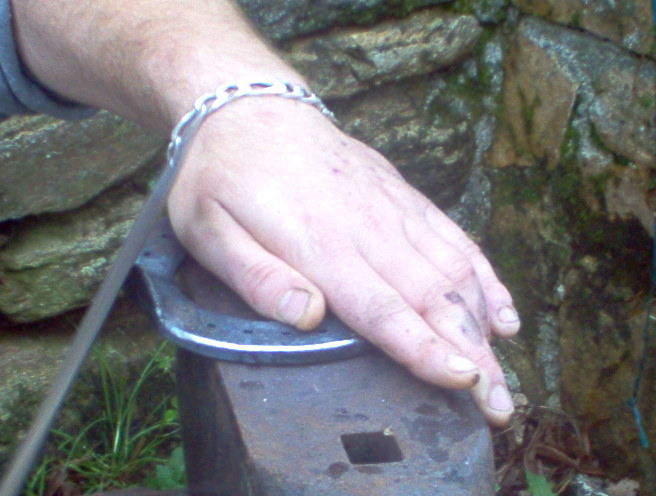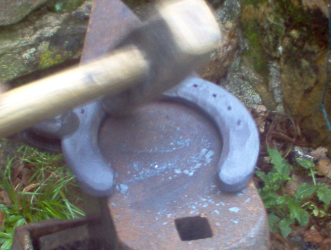 ensuite ont va faire ce que l'ont apelle une "ajusture", c'est a dire que l'ont va ecraser les bords interieurs des branches du fer de façon a ce que la sole ne soit pas directement en contact avec le fer sinon elle recevrait toutes les vibrations du fer lors du posé du pied et cela pourrai l'endommager, surtout si le cheval à les pieds plat