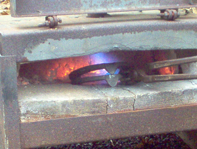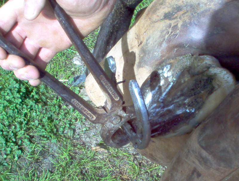 ensuite il ne reste plus qu'a tenir le fer en pince à l'aide de la pince à deferer ou de la tricoise et de pousser le fer vers l'avant et en descendant,