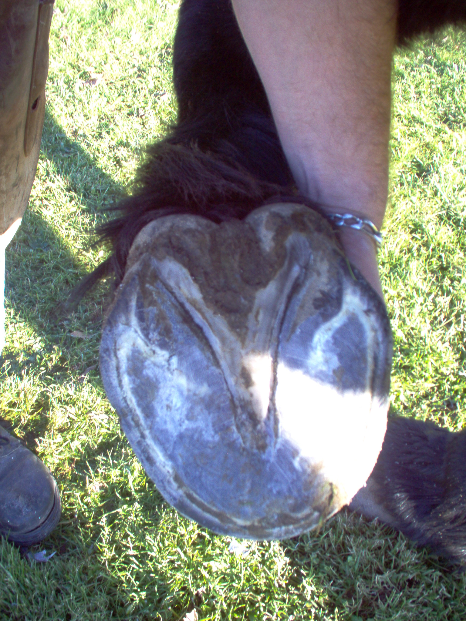 Attention de pas vous couper..... Lorsque le pied est bien curer , ont va pouvoir commencer a examiner l'état de la fourchette et ainsi la tailler le plus juste possible , ni trop peu ni trop pas assez, pour cela ont va d'abord determiner l'endoit ou elle rencontre les glomes au niveau des talons..